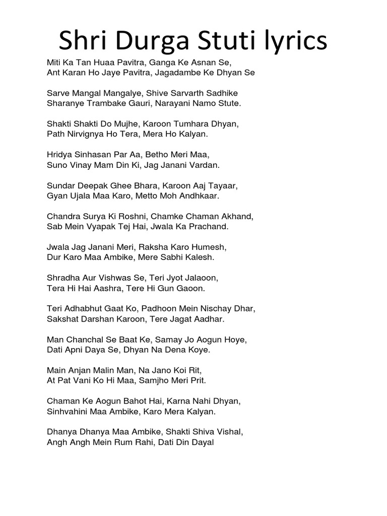 Durga Stuti Paath Lyrics / Ambe tu hai jagadambe kali, jai durge khappara wali, tere hi guna gaven bharati, o maiya hama saba utare teri aarti।