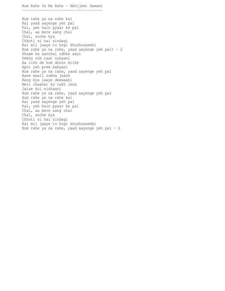 Hum Rahe Ya Na Rahe Kal Lyrics Download : See more of hum rahe ya na rahe kal !!