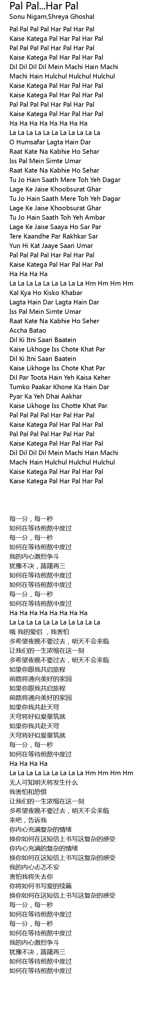 Pal Kaisa Pal Lyrics - Pal pal pal pal har pal har pal.