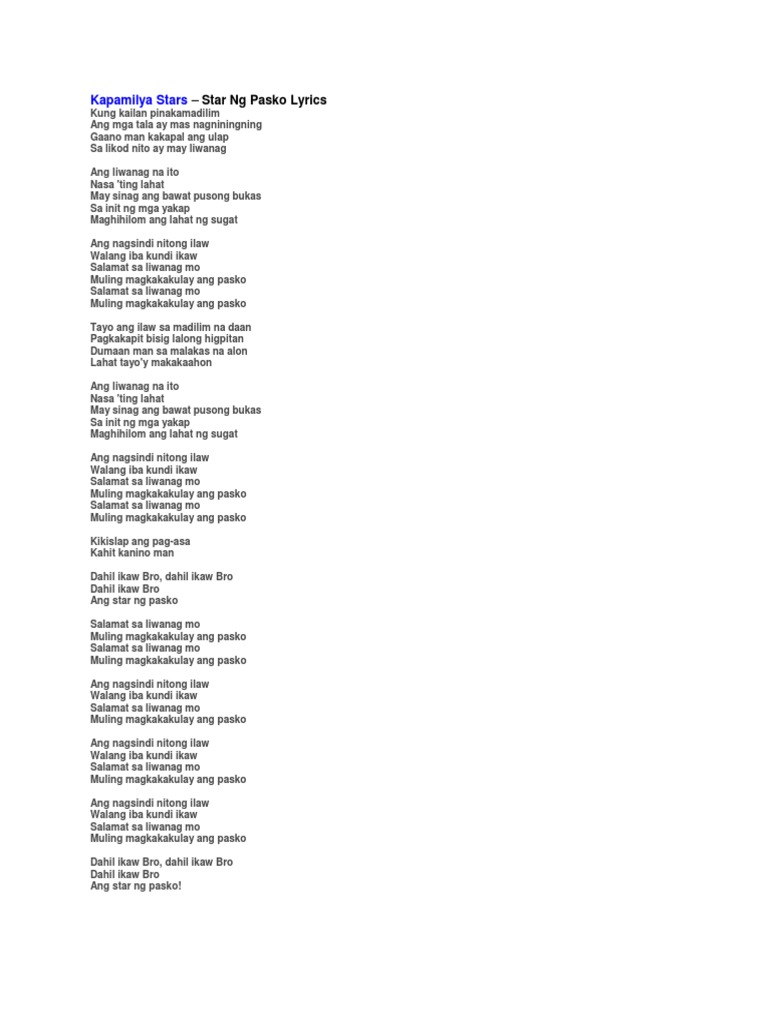 Star Ng Pasko Lyrics : Read or print original star ng pasko lyrics 2020 updated!